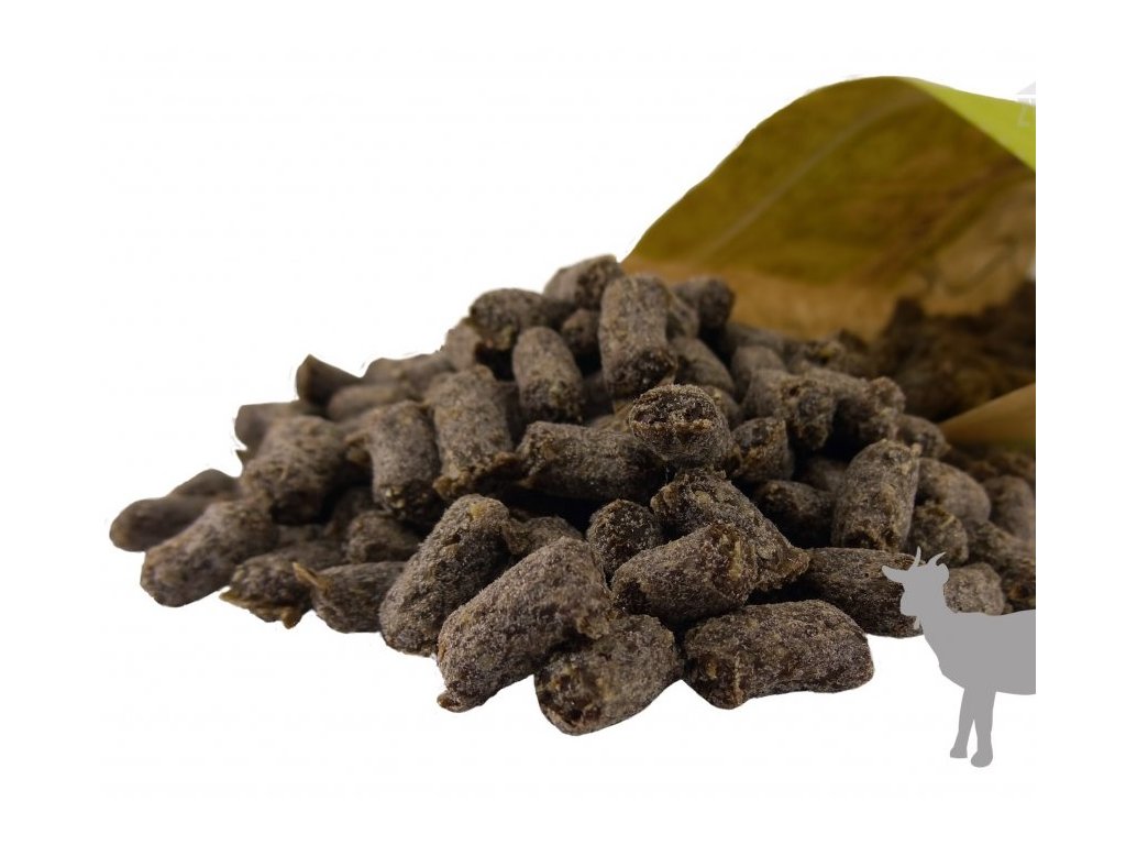 Složení: Čerstvé kozí maso a droby 30%, konopné semeno (částečně odolejované), lněné semeno (částečně odolejované), semeno světlice barvířské (částečně odolejované), maniokový škrob