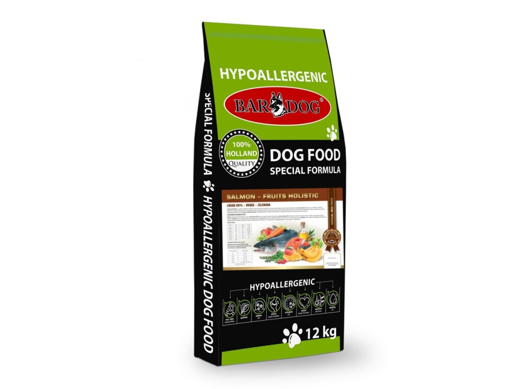 Čerstvý losos (40 %), sušený losos (25 %), sušené ovoce 20% (banán, mango, kiwi, jablko, slivky a brusinky, sušená zelenina 10% (hrách, rajčata, mrkev, celer, pórek), byliny 4 % (šípek, tymián, kopřiva, bazalka, rozmarýn a Echinacea), olivový olej, řepné řízky, lněné semínko, kvasnice, Hydrogenfosforečnan, minerální látky a vitamíny, lecitin (min. 0,5%), L-karnitin, inulin, taurin, Spirulina, calcium carbonate, cholin chlorid, hydrolyzovaná chrupavka (zdroj chondroitinu), hydrolyzovaní korýši (zdroj glukosaminu). MOS Omega 3 a 6 mastné kyseliny v optimálním poměru