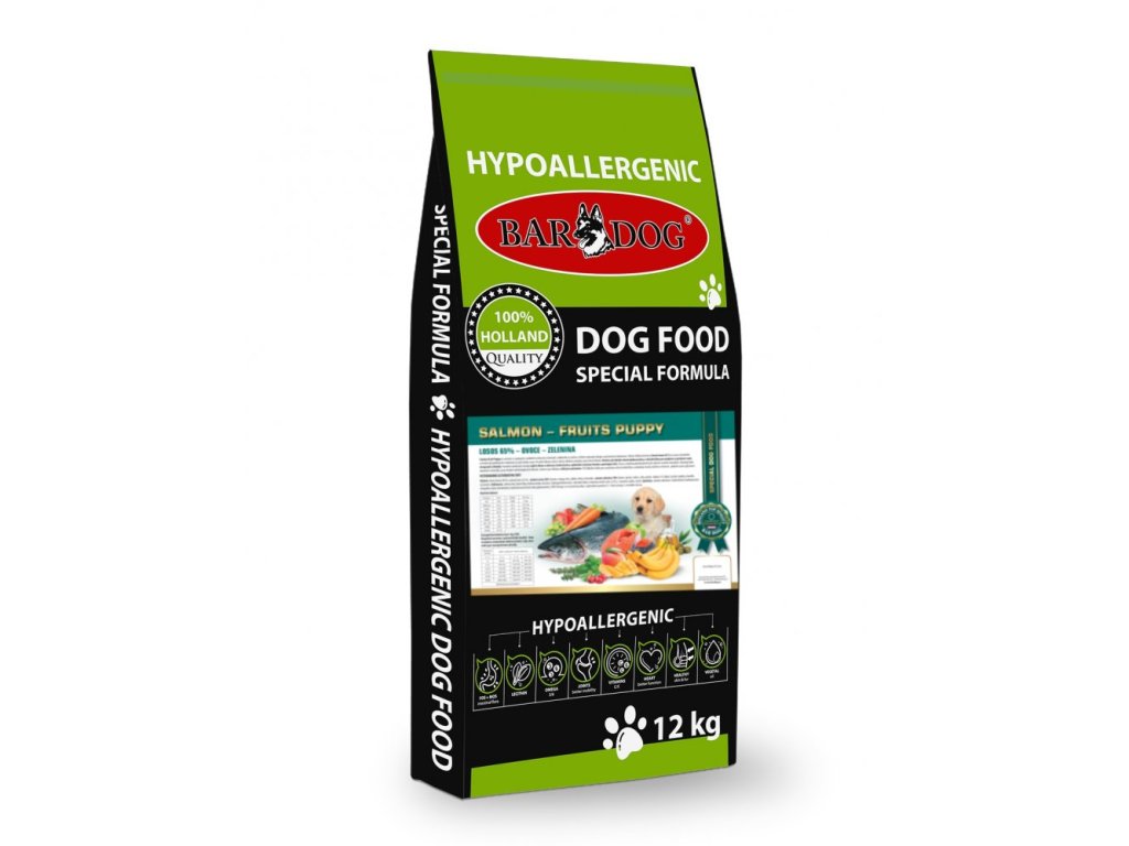 Čerstvý losos (40 %), sušený losos (25 %), sušené ovoce 20% (banán, mango, kiwi, jablko, slivky a brusinky, sušená zelenina 10% (hrách, rajčata, mrkev, celer, pórek), byliny 4 % (šípek, tymián, kopřiva, bazalka, rozmarýn a Echinacea), olivový olej, řepné řízky, lněné semínko, kvasnice, Hydrogen fosforečnan, minerální látky a vitamíny, lecitin (min. 0,5%), L-karnitin, inulin, taurin, Spirulina, calcium carbonate, cholinchlorid, hydrolyzovaná chrupavka (zdroj chondroitinu), hydrolyzovaní korýši (zdroj glukosaminu). MOS Omega 3 a 6 mastné kyseliny v optimálním poměru