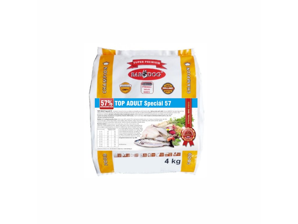 Kompletní lisované krmivo za studena pro dospělé psy je určeno pro psy s běžnou nebo vyšší zátěží. Krmivo Bardog Top Adult Special 57 je bohaté na živiny a další důležité látky. Složení tohoto přírodního krmiva bylo vyvinuto na základě dlouhodobých zkušeností ve výrobě krmiv lisovaných za studena.
