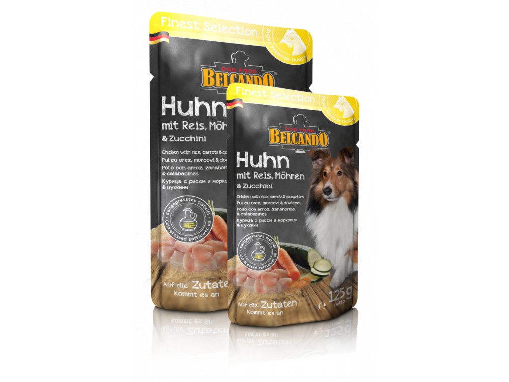 kuřecí maso (63 ); masový vývar (28 %); rýže (4 %); mrkev (2 %); cuketa (2 %); světlicový olej (0,5); uhličitan vápenatý (0,5%)