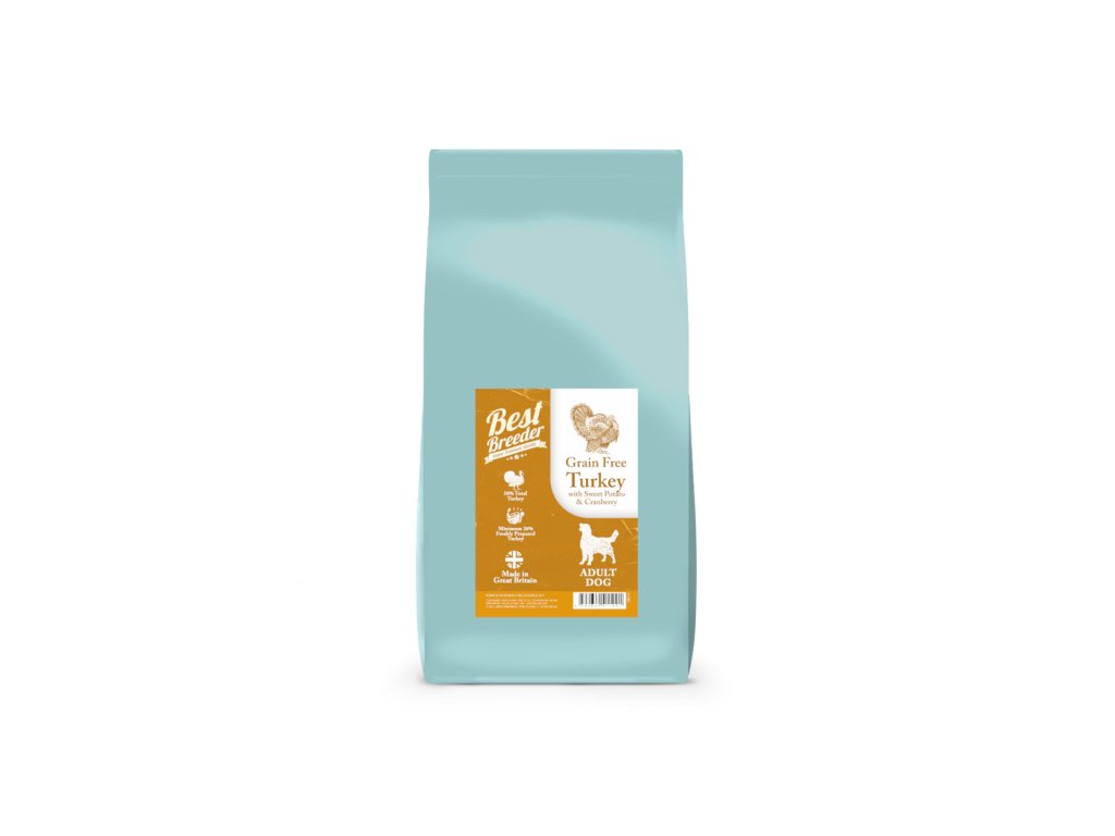 Krůtí maso 50 % (včetně čerstvě připraveného krůtího masa 28 %, sušeného krůtího masa 20 %, krůtího vývaru 2 %), sladké brambory 26 %, sladký hrášek 9 %, brambory, řepná dužina, lněné semínko, Omega 3 mastné kyseliny, vitaminy, minerály, zeleninový vývar, brusinky 0,3 %, FOS 96 mg/kg, MOS 24 mg/kg