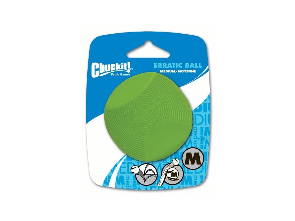 Míčky Erratic jsou určené pro všechny aportéry, které již nebaví ten stále stejný odskok. Míčky díky svému tvaru odskakují pokaždé jinak a Vašeho psa tak bude aportování ještě více bavit. Obstojí i u velmi náruživých kousačů...Míčky jsou kompatibilní s házeči Chuckit!.Upozornění:U veškerých hraček pro psy doporučujeme, aby hra probíhala zvláště u mladých zvířat pod dohledem majitele. Je třeba brát ohled na to, aby hračka, s kterou si Váš pes hraje, byla nepoškozená. Stav hračky je třeba pravidelně kontrolovat. V případě poškození nahradit. Je třeba zamezit případnému spolknutí či zranění psa.