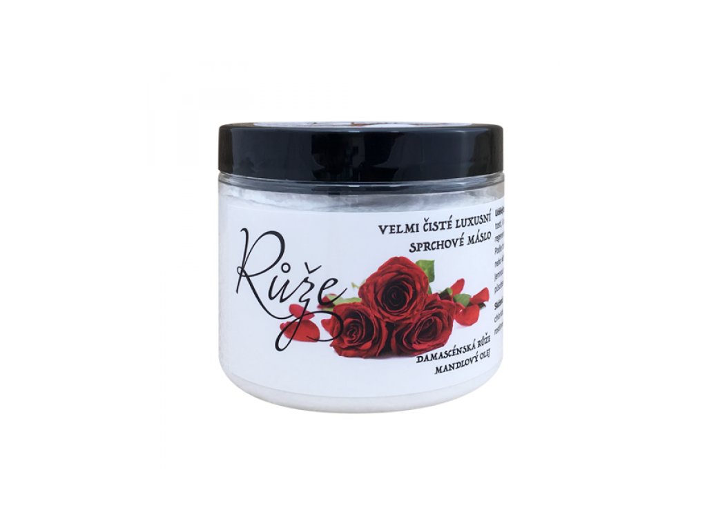 Luxusní sprchové a koupelové máslo Růže s čistou jadranskou solí a rostlinnými silicemi vám přináší jedinečný prožitek a souhru vůní skutečné růže, santalového dřeva a mandlového oleje. Nechte se hýčkat a užívejte si.