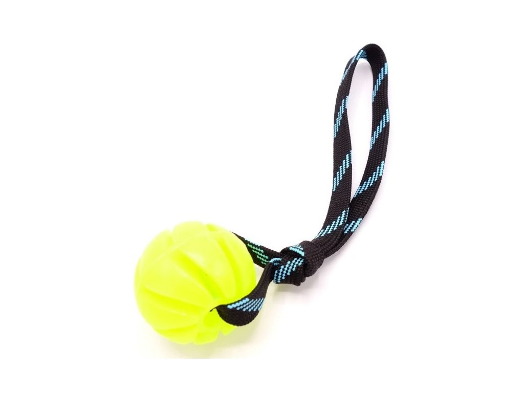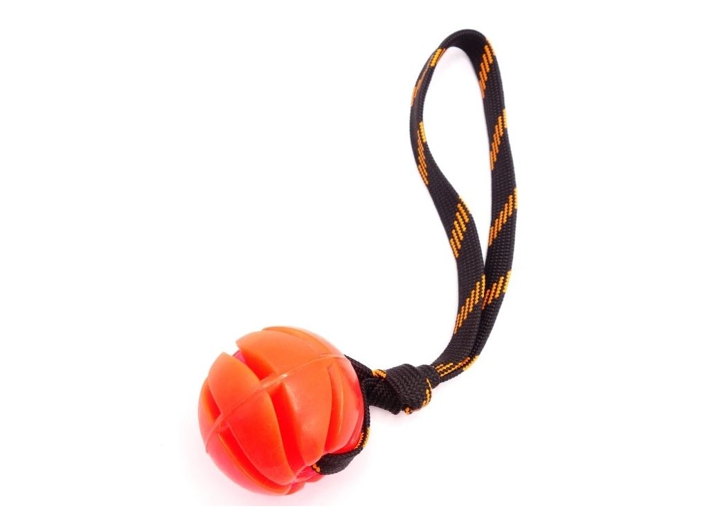 Hledáte ideální hračku nejen na léto k vodě? Vyzkoušejte spirálovitý míček z tvrdé gumy s praktickou rukojetí. Díky tvrdé gumě a promyšlenému designu je tento míček ideální na aportování. Navíc díky rukojeti se míček hodí i na přetahování.