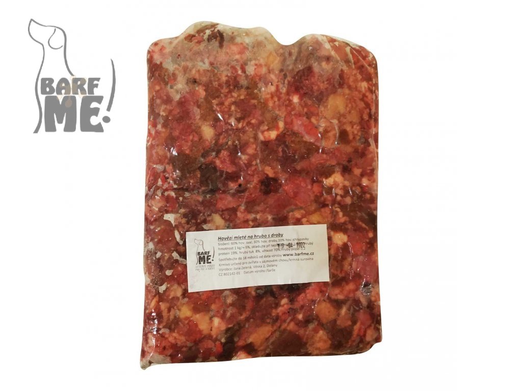 složení: 60% hovězí ořezy, 30% hovězí droby (vemeno, játra, plíce, slezina, ledviny) a 10% hovězí chrupavky