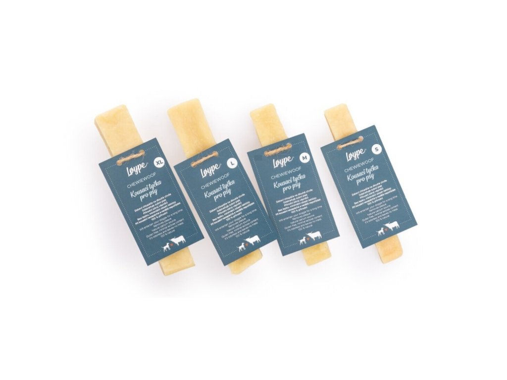 Chewiewoof je odolný kousací pamlsek, který psovi vydrží i na hodiny zábavy. Jeho výroba byla inspirována tradiční recepturou pocházející z Himálaje, při které se používá kvalitní sušené mléko, které se postupně přemění na sýr zrající alespoň po dobu tří měsíců, aby získal dostatečnou hustotu a tvrdost. Tyčka neobsahuje žádné umělé konzervanty a je vyrobena pouze z jediné přírodní suroviny. Proto je také výborným zdrojem vápníku a obsahuje jen minimální množství laktózy. Kousání tyčky kromě zábavy a uklidnění odstraňuje zubní plak, čímž pomáhá psovi udržovat zdravý chrup. Navíc nešpiní a nezapáchá, takže vám s ní pes doma nenadělá nepořádek. K dispozici jsou hned 4 varianty S, M, L a XL, z nichž vybírejte v závislosti na velikosti psa. Pro střední a velké psy doporučujeme tyčky o velikosti L nebo XL.