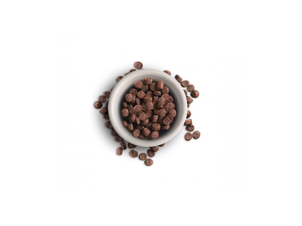 Složení: čerstvý losos (30%), rybí moučka z mořských ryb (20%), amarant (15%), hrachová mouka, bramborový škrob, drůbeží protein, drůbeží tuk, mořský zooplankton (krill 5%), hydrolyzovaná drůbeží játra, pivovarské kvasnice (2,5%), sušená jádra hroznového vína (1,5%), chia semena (1,3%), sušené lusky svatojánského chleba, chlorid draselný, inulin z čekanky.