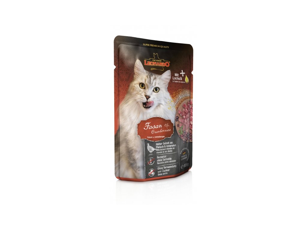 Drůbeží srdce, játra, žaludky (37 %); bažantí maso (30 %); masový vývar (29,8 %), brusinky (2 %); vaječné skořápky, sušené (0,5 %); minerály (0,5 %); lososový olej (0,2 %).