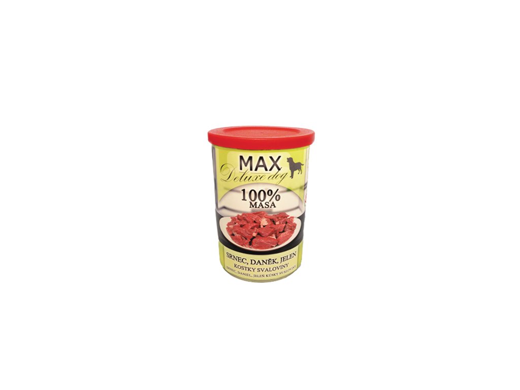 Čistě masová konzerva de luxe - lahodné kostky zvěřiny, čistá chuť divočiny s minimálním množstvím tuku.