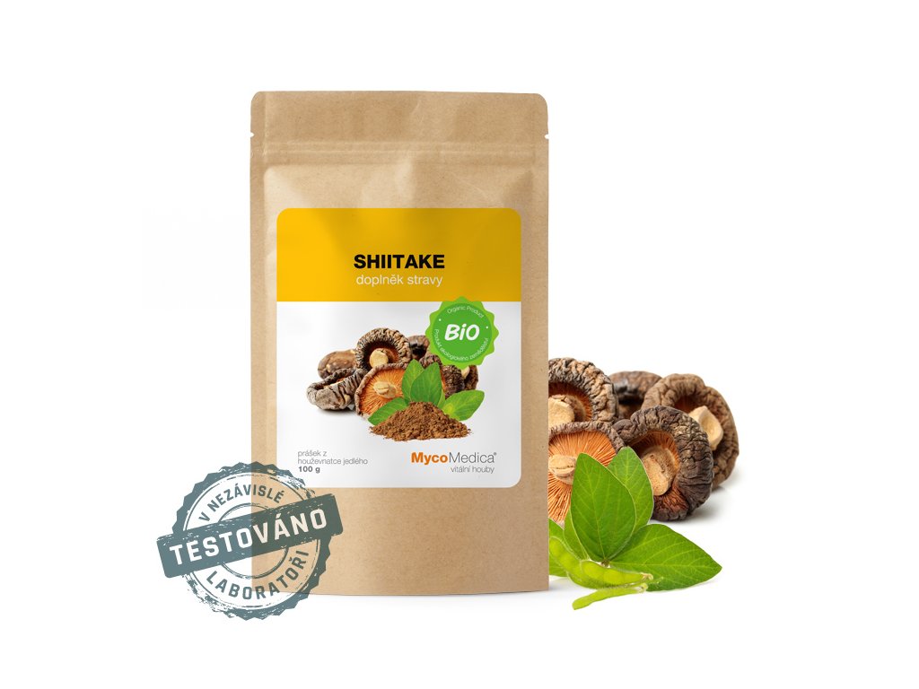 Obsah balení: 100g BIO prášku z plodnice Lentinula edodes (biomasa/powder)
