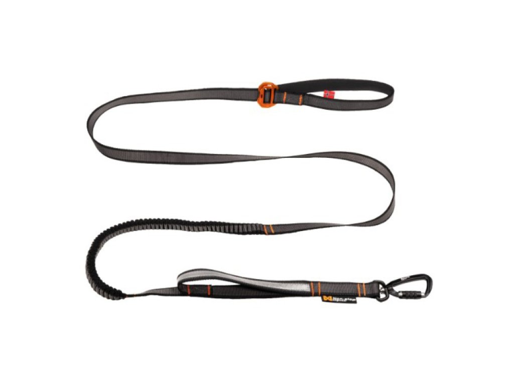 Velmi praktické všestranné vodítko. Není celo-pružné - má pevnou část ale i amortizér. Dá se tedy použít i na tahání.  Pevná část s uchem v rámci vodítka umožňuje v případě potřeby psa pevně chytit. Navíc lze použít i jako pracovní posuvné vodítko, takže můžete i jít a mít úplně volné ruce. Je snadno nastavitelné.