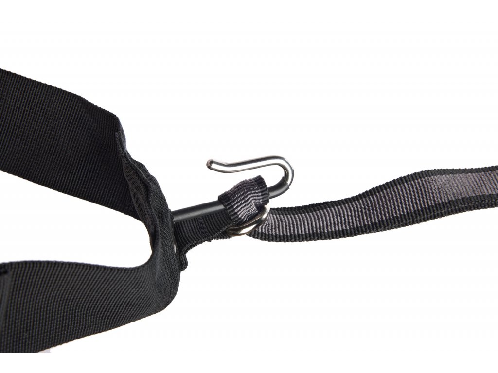 • Poutka na připnutí vodítka, když jde pes na volno – vodítko obtočíme kolem pasu a karabinu cvakneme na poutko