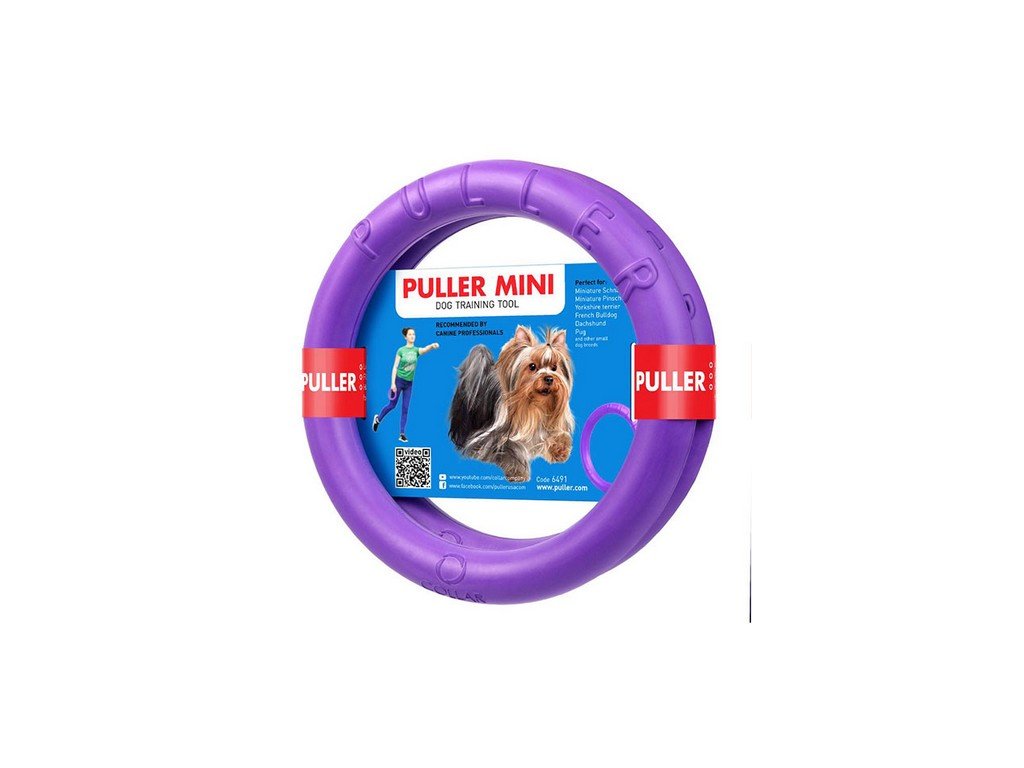 PULLER MINI je z unikátního materiálu, který nepoškozuje zuby ani dásně vašeho psa. Pes se lehce zakousne, aniž by narušil vlastnosti a tvar. Stopy po zubech jsou běžné a nijak nesnižují trvanlivost a odolnost. Oba kruhy se používají zároveň. Když si budete se psem hrát 20 minut, váš pes vydá tolik energie jako při běhu na 5km. Tréninkem s PULLERem posilujete všechny svalové partie vašeho psa. Díky kruhům si váš pes vylepší fyzickou kondici, soustředění a postřeh. Výhody PULLERu:- Vysoká životnost hračky- Velmi odolný v tahu- Neničí zuby a dásně- Materiál je zdravotně nezávadný- Neskutečně lehký- Úžasně létá- Plave na vodě- Odolný vůči nečistotám a zápachu- Snadná údržbaPULLER trénink se skládá ze tří cviků:PULLER RunningPro intenzivní trénink využijte oba dva PULLERy a to tak, že hodíte psovi první kruh. Vždy házejte tak, aby se kutálel a ne jako frisbee. Když se pes vrací, hoďte druhý kruh. Pro intenzivní cvičení běhu a postřehu nepoužívejte příkaz ,,PŘINES“, ale lepší je ,,PULLER“. Nikdy psovi nepředávejte druhý kruh z ruky, vždy ho hoďte na druhou stranu než první kruh. Tato část hry by neměla trvat déle než 5-7minut. Poté plynule přejděte na druhou část tréninku a to PULLER Jumping.PULLER JumpingAby trénink skoků a výskoků byl efektivní, použijte oba kruhy. Cílem tohoto tréninku není získat kruh, ale chytnout ho ve výskoku a po dopadu pustit a vyskočit pro druhý kruh.Typ 1: Zvedněte PULLER do výšky tak, aby se pes musel odrazit od zadních nohou. Až bude pes ve vzduchu a zakousne se, nechte psa dopadnout na zem. Důležité je, aby pes doskočil na zem na zadní nohy. Ihned mu ukažte druhý kruh, aby první pustil a převedl pozornost na druhý. Stůjte na místě a jen střídejte kruhy.Typ 2: Když pes vyskočí pro PULLER a zakousne se do něj, můžete následovat jeho dráhu letu a pohyb kruhu protáhnout okolo své osy. Tyto skoky budou delší a intenzivnější.Cvičení by nemělo trvat déle než 5 minut. Štěňata mladší 1,5roku by měla dělat jen mírné skoky.PULLER PullingPoslední trénink je přetahovací. Opět použijte oba dva kruhy. Nechte psa zakousnout a přetahujte se. Když pes vrčí, není to nic špatného, dává vám najevo zápal a radost z přetahování. Vždy nechte psa vyhrát. Když pes zvítězí a vytáhne Vám první kruh z ruky, ihned mu nabídněte druhý kruh. Radost a soutěživost psa můžete dále rozvinout tím, že budete tahat a lomcovat s kruhy. Tento trénink posiluje krční a šíjové svaly, svaly čelistí a výborný skus. PULLER není hračka, ale výborná tréninková pomůcka, proto ji nenechávejte bez dozoru u psa. PULLER využijte ke společné zábavě a tak pes trénink vezme jako hru a ne nutnost. Dále každý další trénink bude plný nadšení a zábavy.