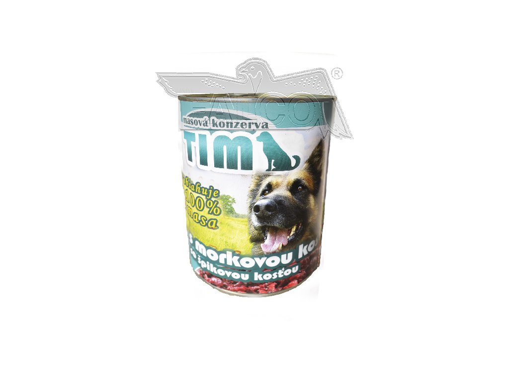 Čistě masová konzerva vyrobená z mleté směsi kuřecích trupů, drobů a hovězího ořezu - navíc obohacena o morkovou kost.