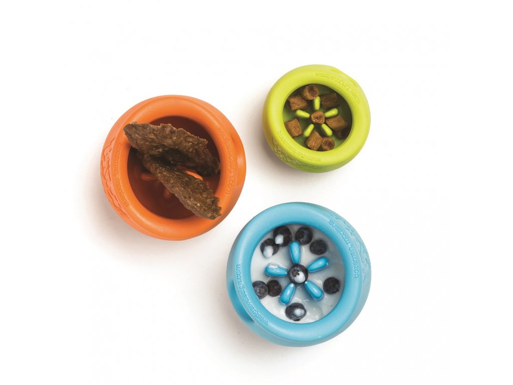 Toppl je odolná plnící puzzle hračka, kterou můžete naplnit čímkoliv, co má váš chlupáč rád. Uvnitř Toppl jsou malá chapadýlka, která vložené pamlsky přidrží. Díky tomu hned nevypadnou a zábava je tak pro vašeho chlupáče delší a interaktivnější.