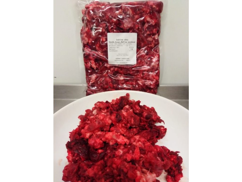 Zvěřinový ořez neobsahuje divočáka. Maso je směs dančího, mufloního, srnčího a jeleního masa.
